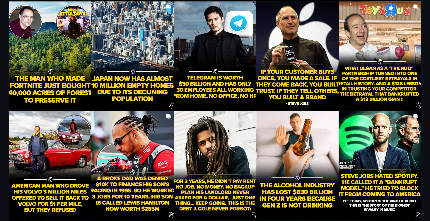 - Most hooks, content direction, and posting are run by me with a design and editing team.